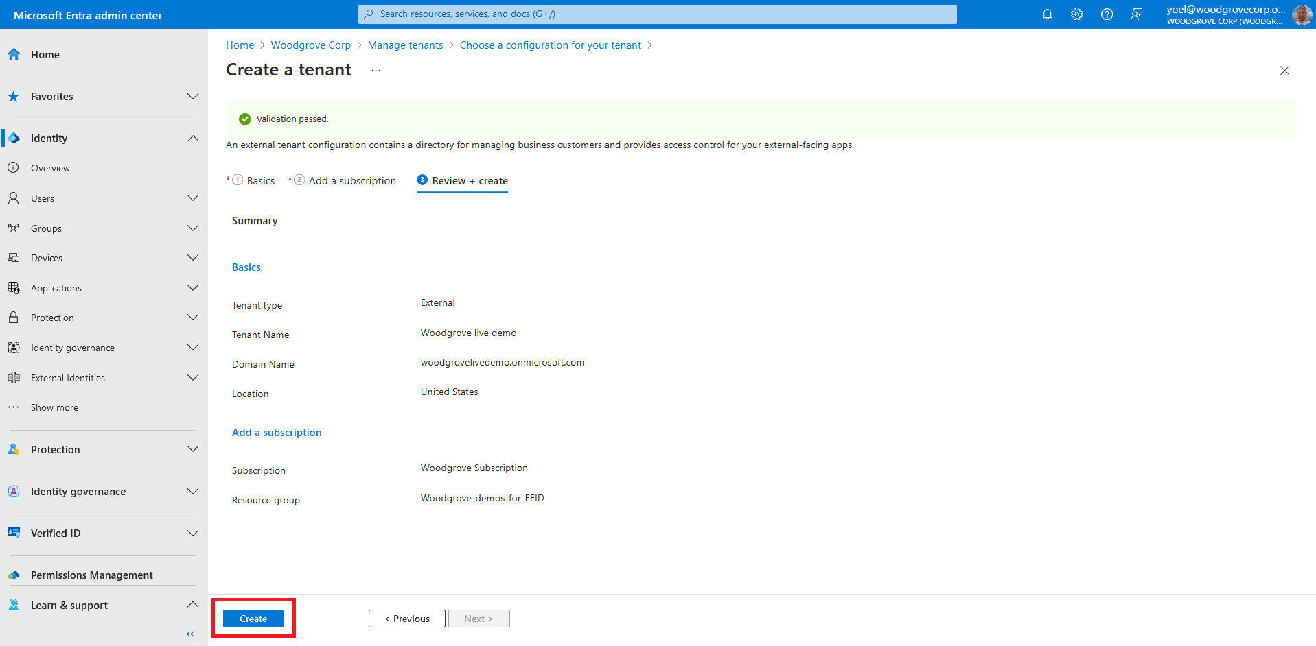 At this point, the Microsoft Entra External ID tenant is ready to use.