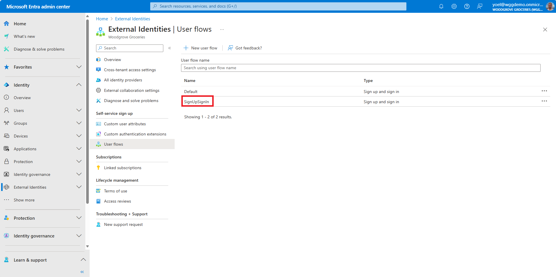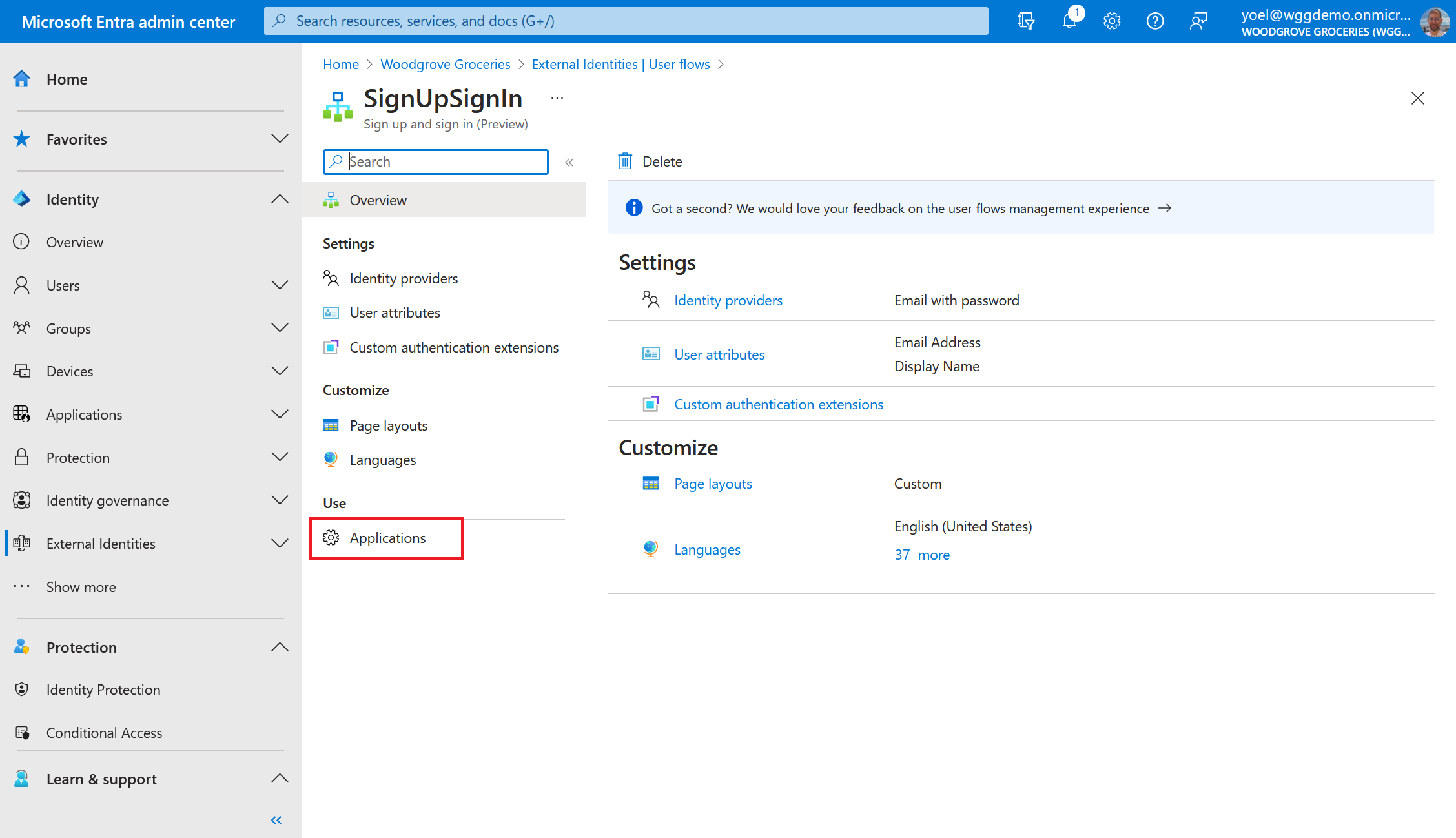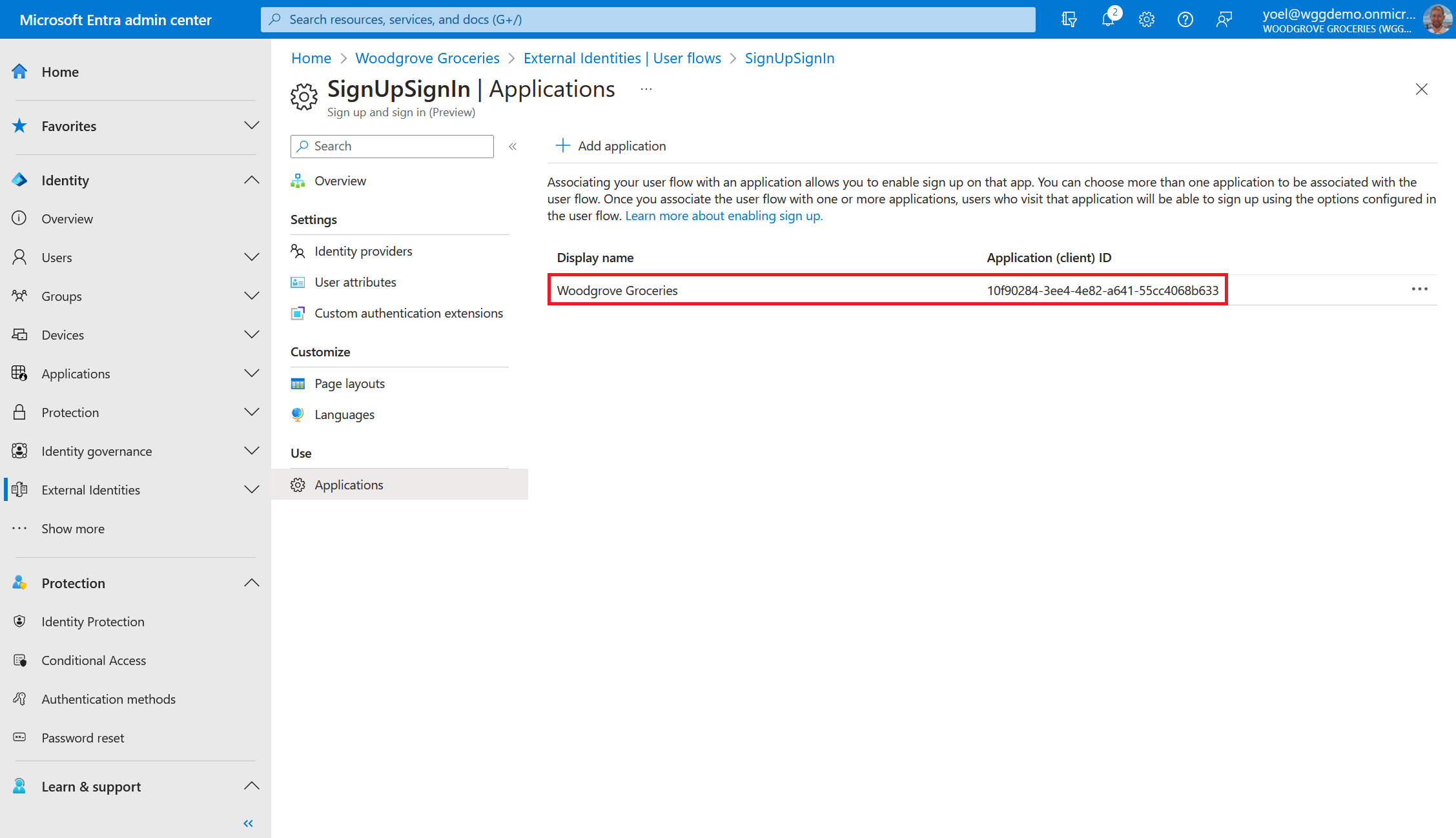 application is linked to the user flow. When users sign-in to the Woodgrove