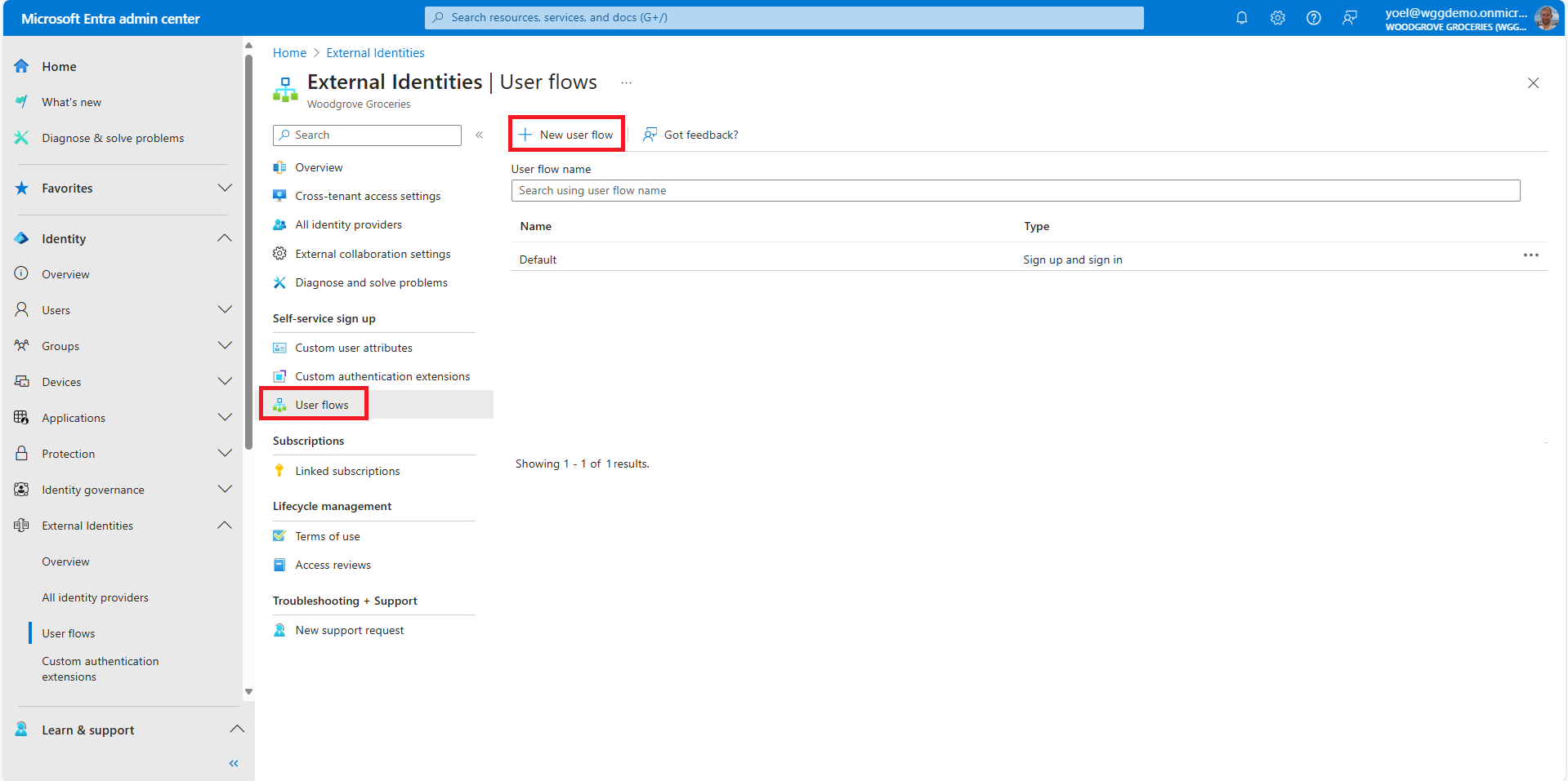From the menu, select User flows. Then, select New user flow.