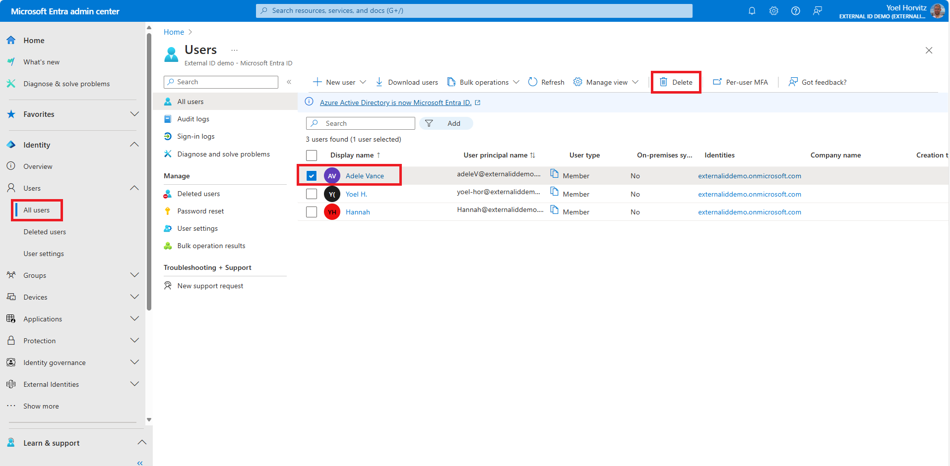 want to delete, then select Delete user.
