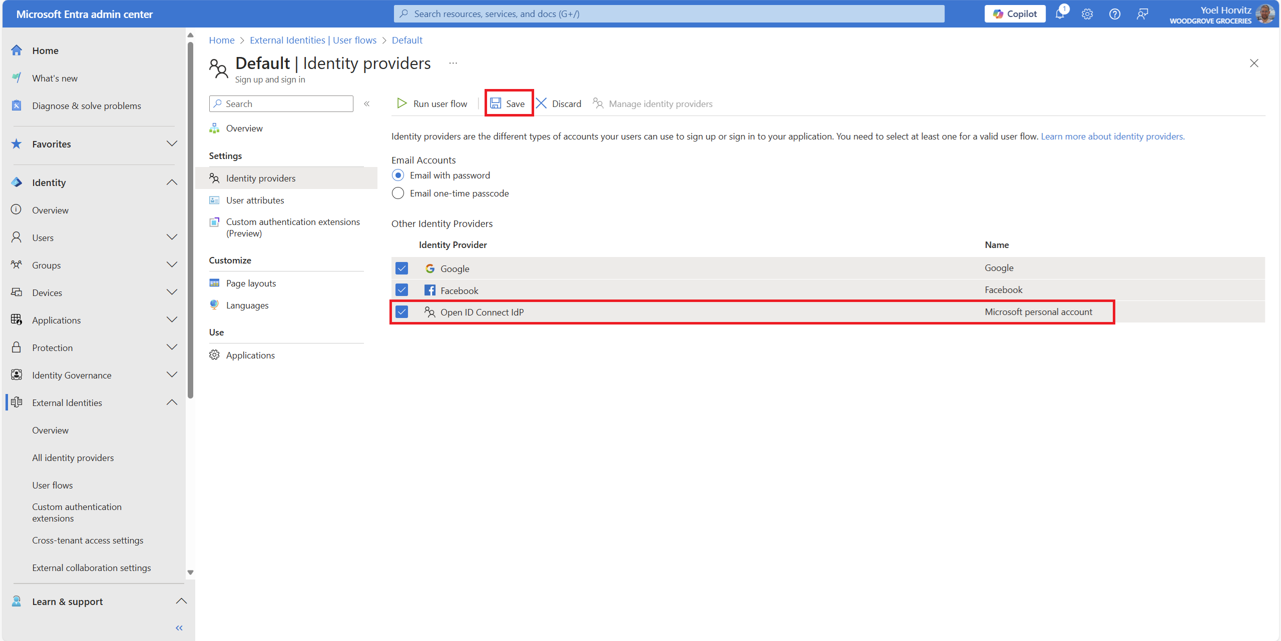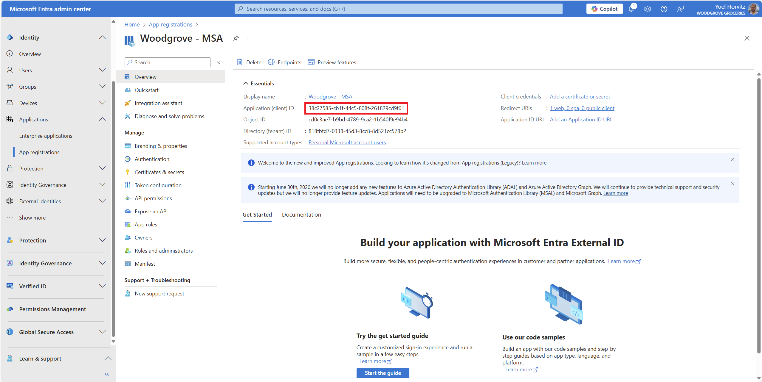 After you register the MSA identity provider to your Microsoft Entra external ID tenant, you can