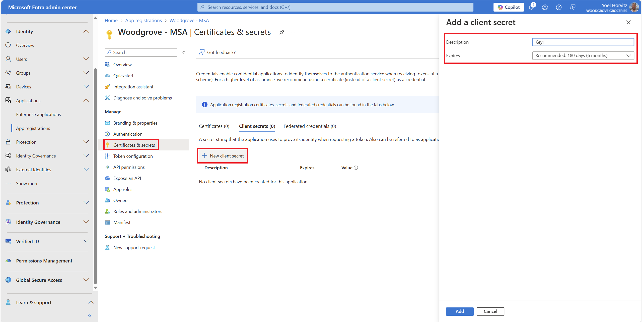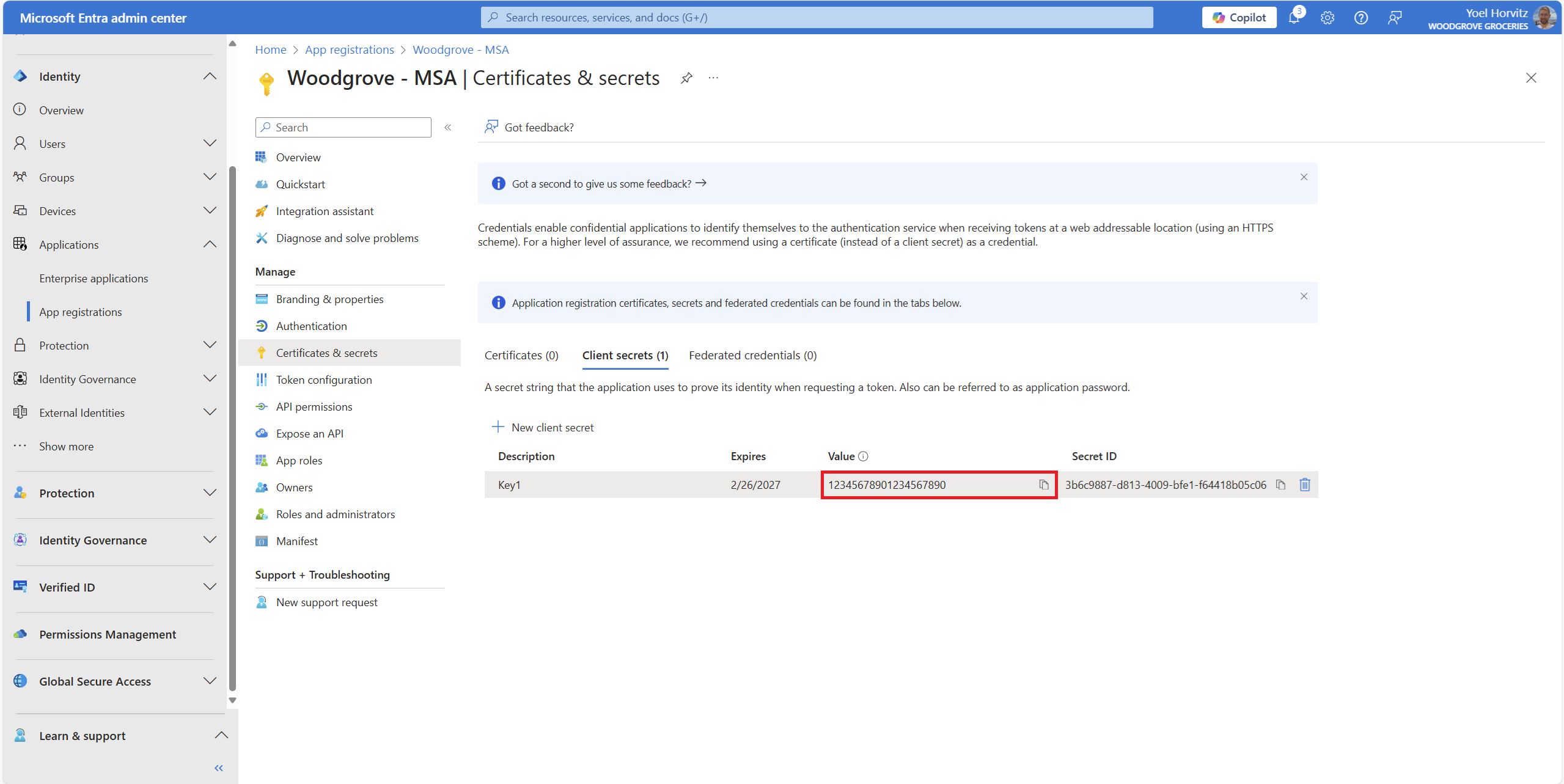 Record the secret'svalue for use in your custom OpenID Connect identity provider