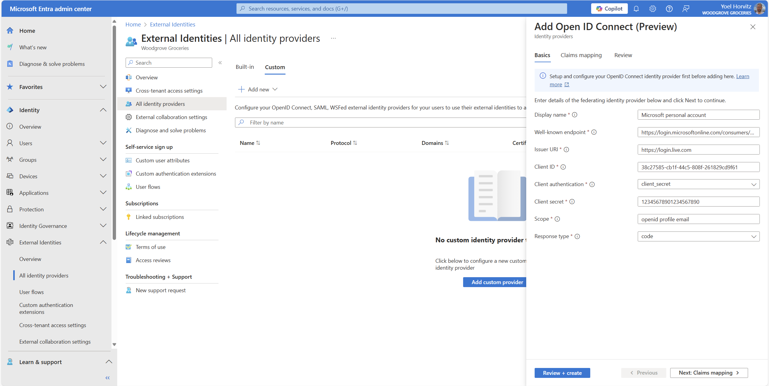 external ID. To achieve this, we adhered to the guidelines outlined in the article on custom OpenID Connect identity provider.