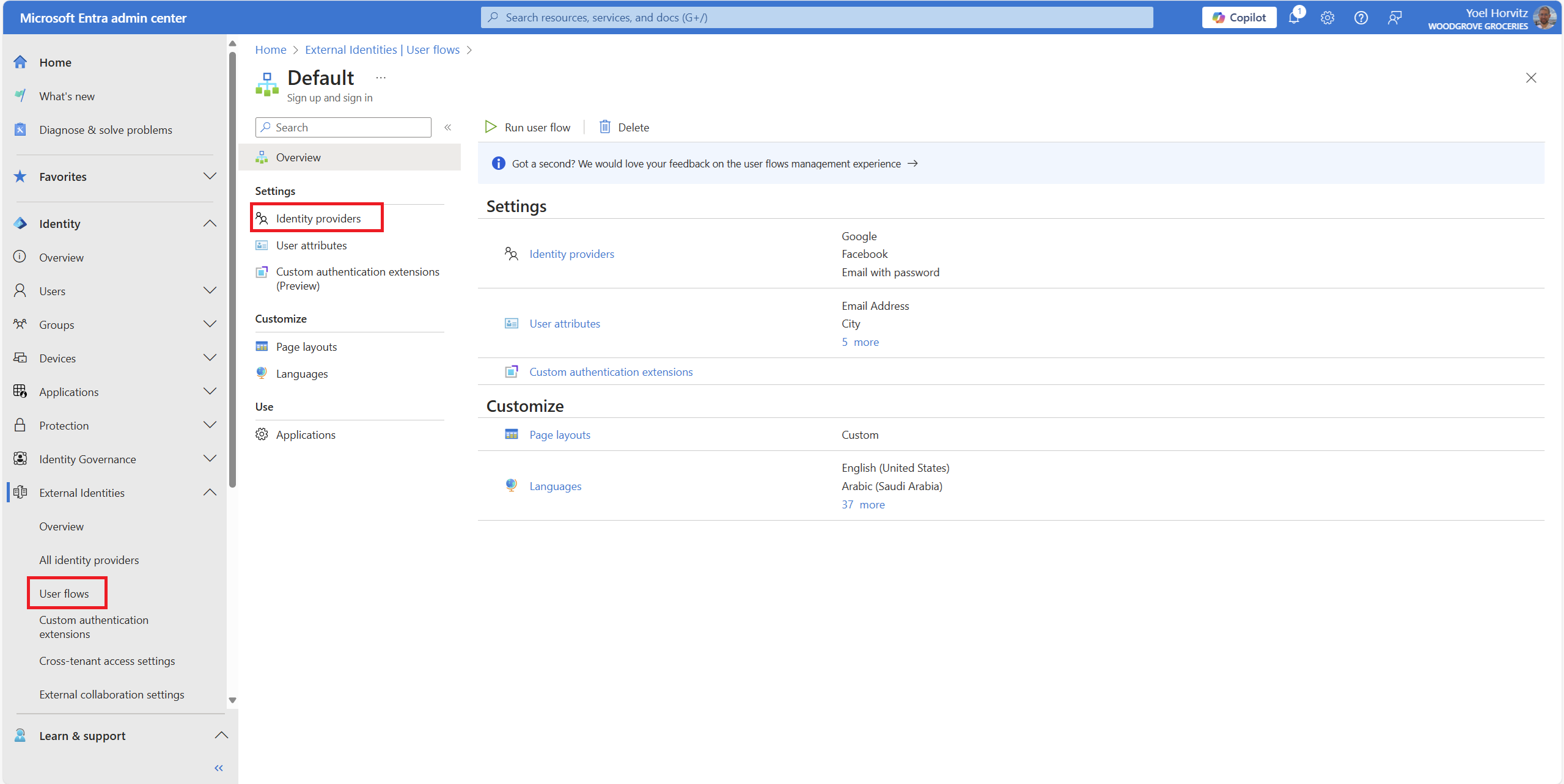 In your Microsoft Entra external ID tenant, navigate to External Identities and then