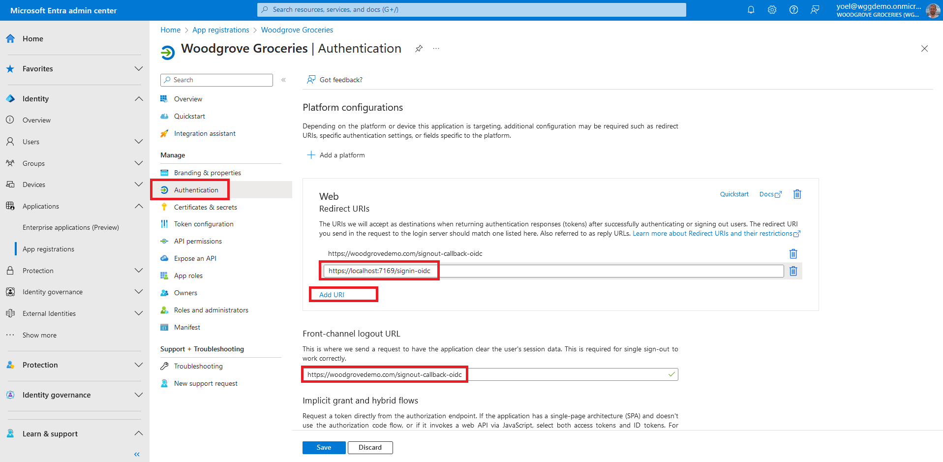To add more Redirect URIs, or Front-channel logout URL, under Manage select