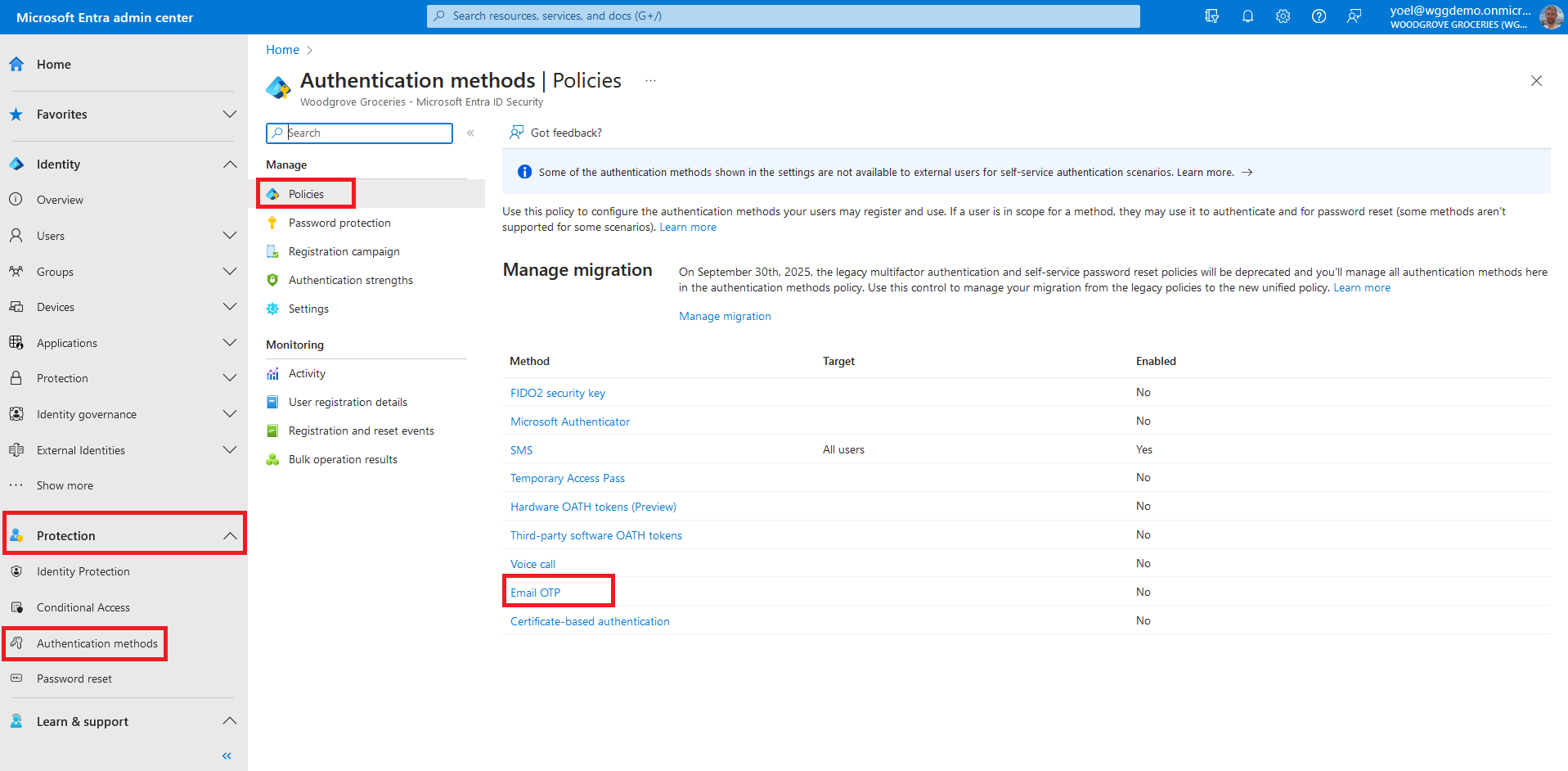 sign-in with email and one-time passcode, or email multifactor authentication (MFA).