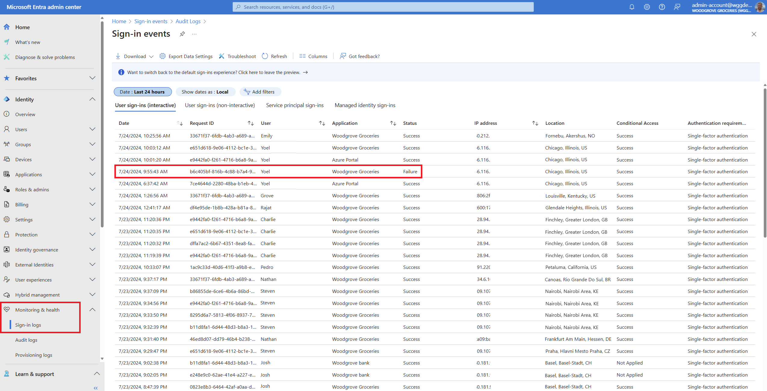 to Monitoring & health > Sign-in logs. Then, search and select one of the sign-in log entry.