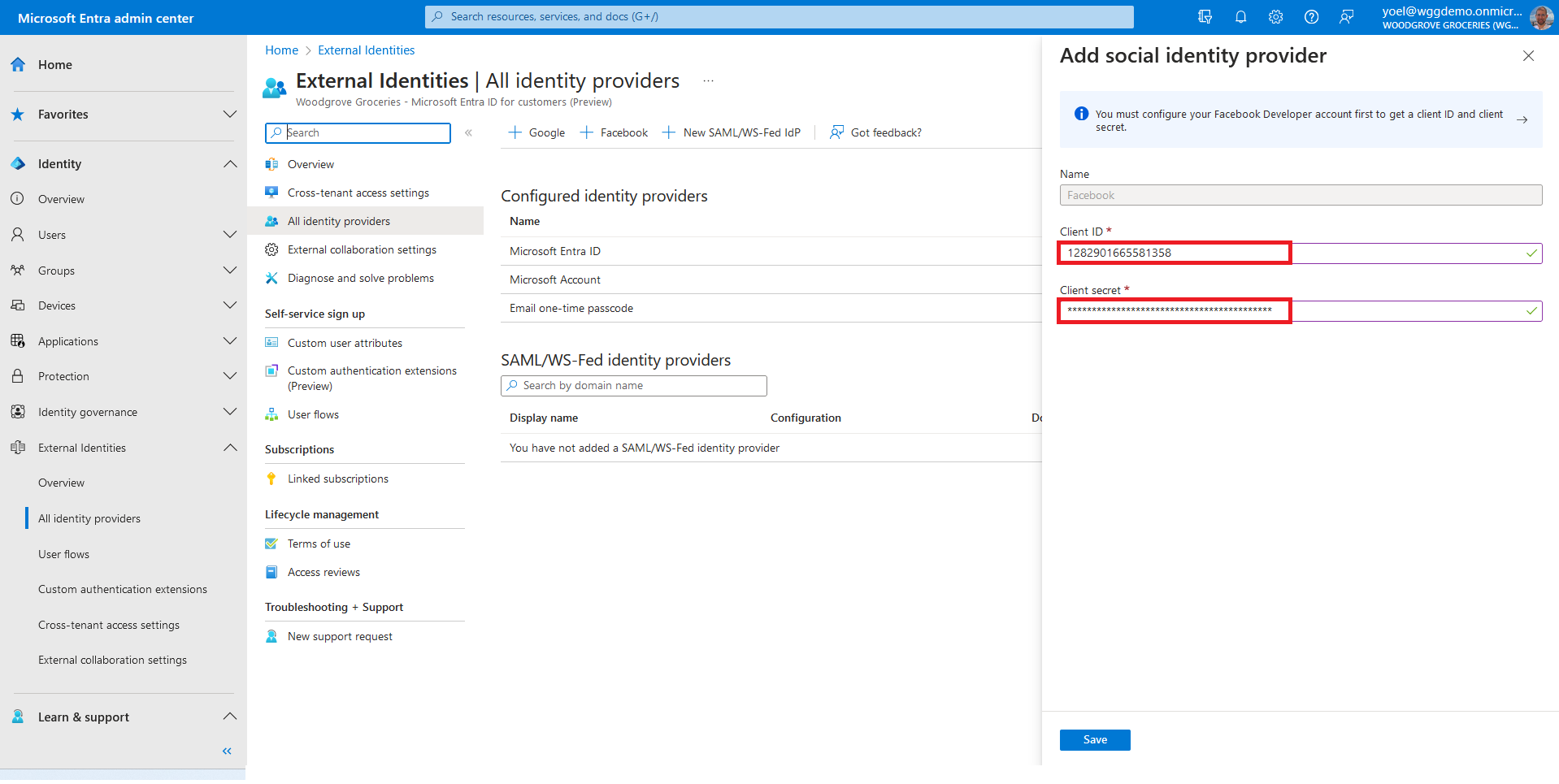At this point, the Facebook identity provider has been set up in your Microsoft Entra ID, but