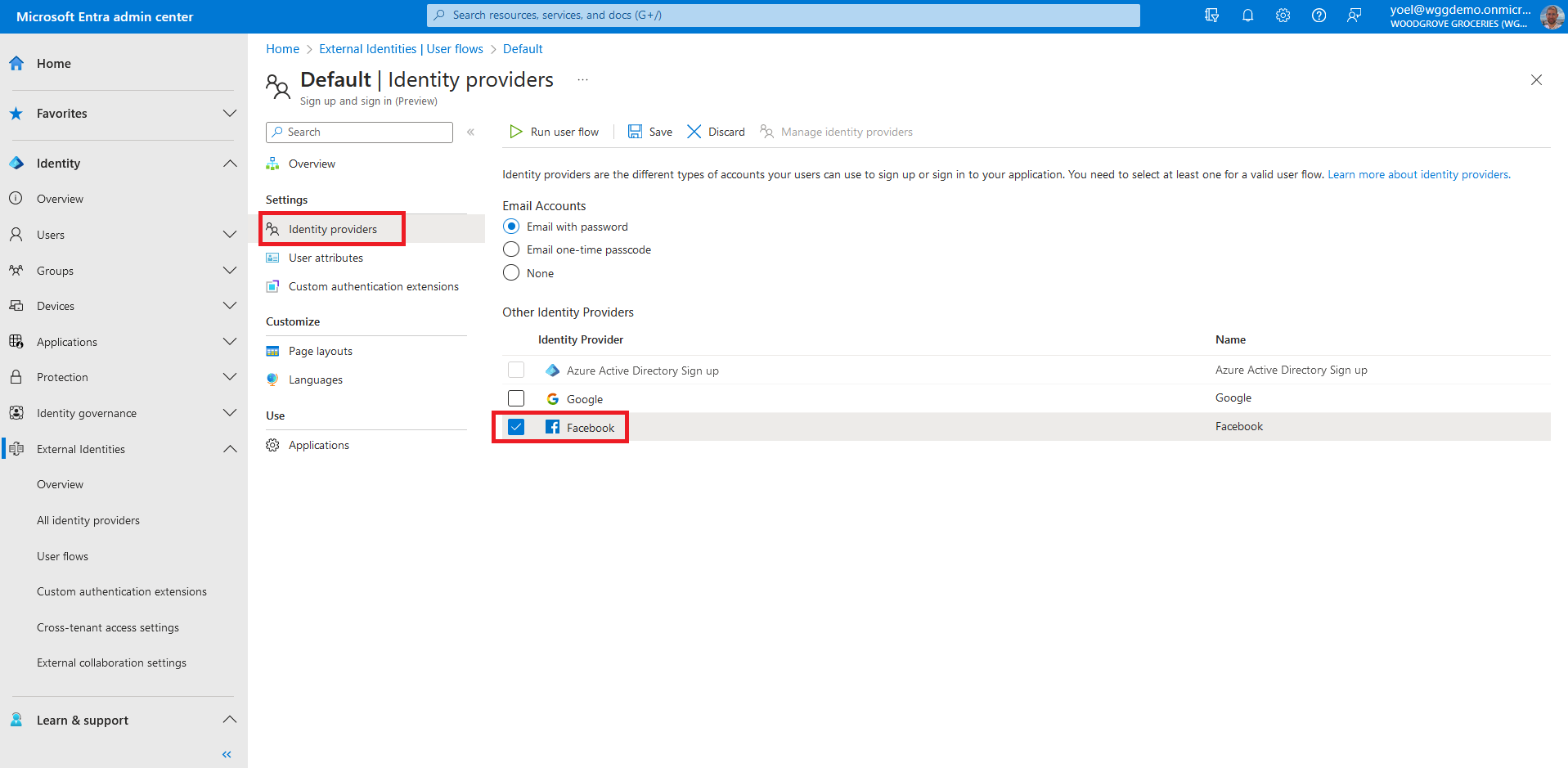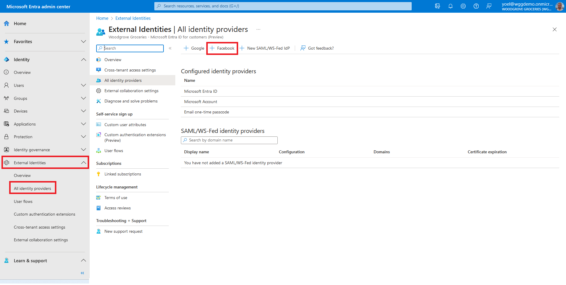 can sign-in to Microsoft Entra ID with Facebook. The steps in this demo applies also to other