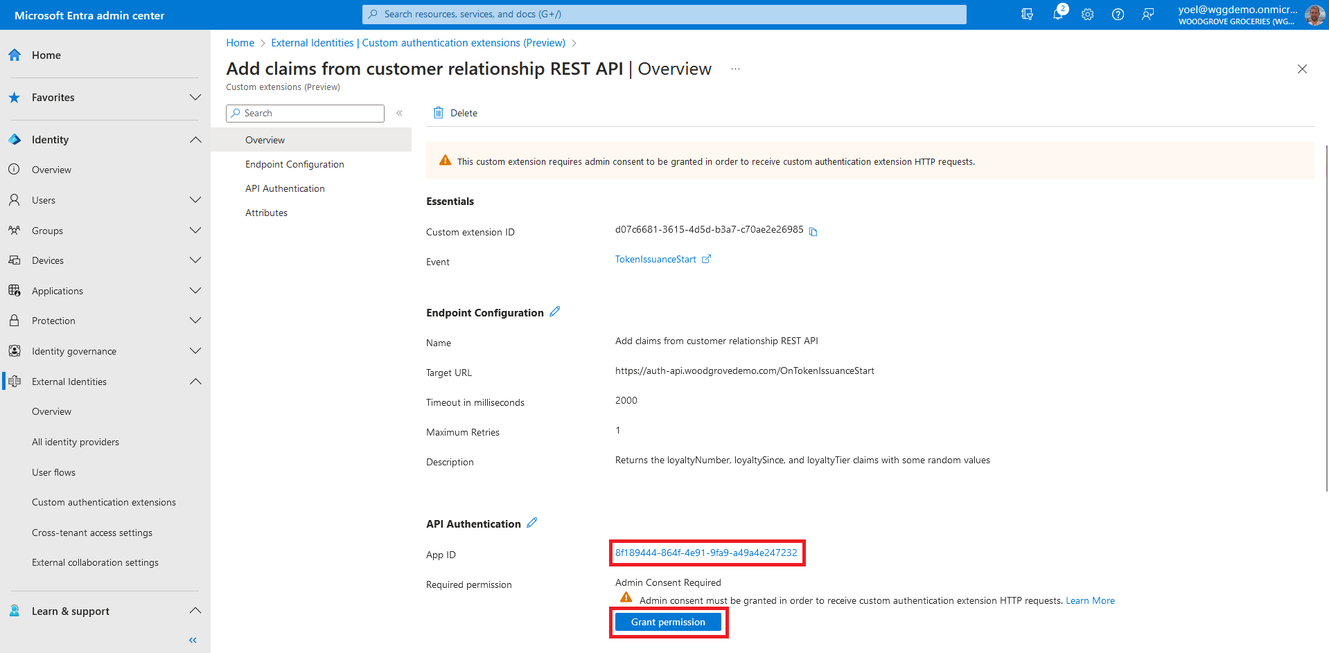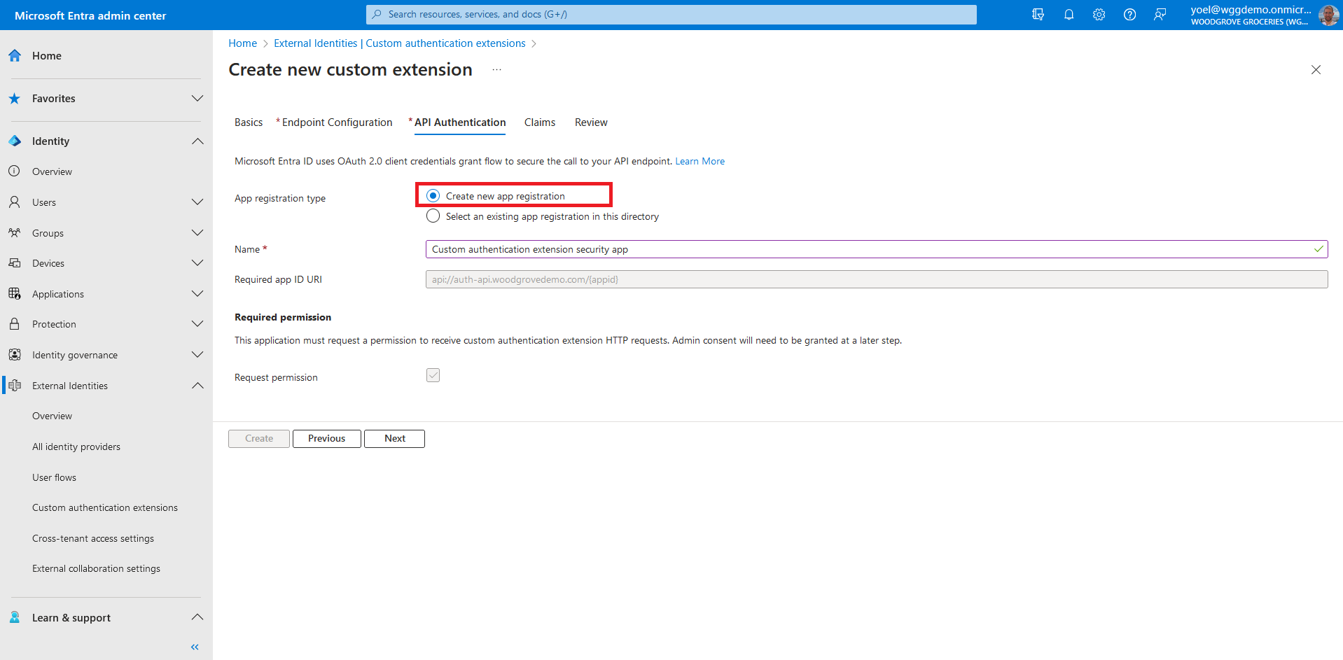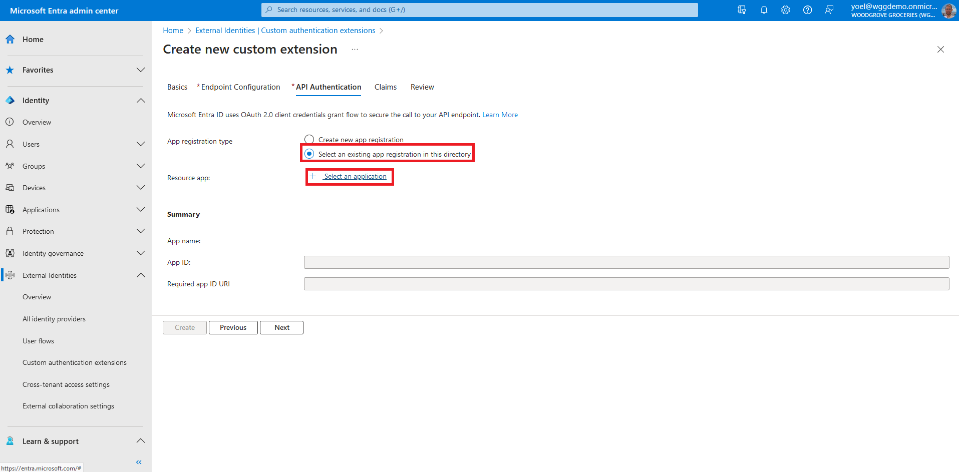 To add a custom authentication extension, sign in to the Microsoft Entra admin center